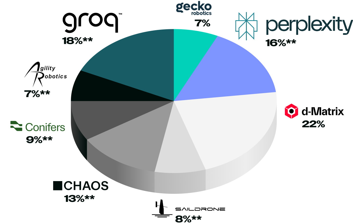 After selling out our first five Funds, you now have access to the Catalyst Fund (IRA), featuring leading names in AI (Groq,* Perplexity,* d-Matrix, Conifers*), security and defense (Saildrone,* CHAOS Industries*), and robotics (Agility Robotics,* Gecko Robotics). Limited to 100 spots. Self-Directed IRA Only.